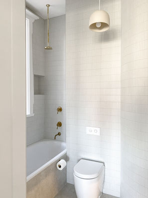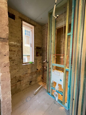 Full renovation of the bathroom, including raising the roof and installing a Velux window.