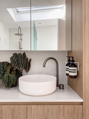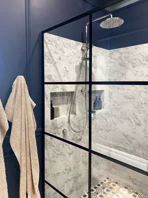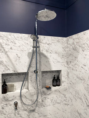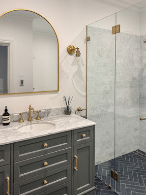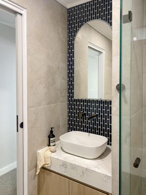 Full ensuite and main bathroom renovation, in wall cistern, custom vanity.