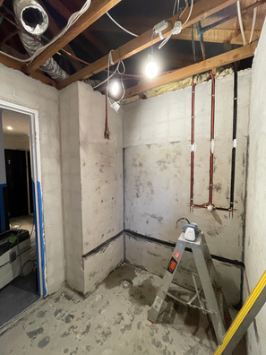 Demolish existing bathroom, remove internal wall and install concrete lintel.